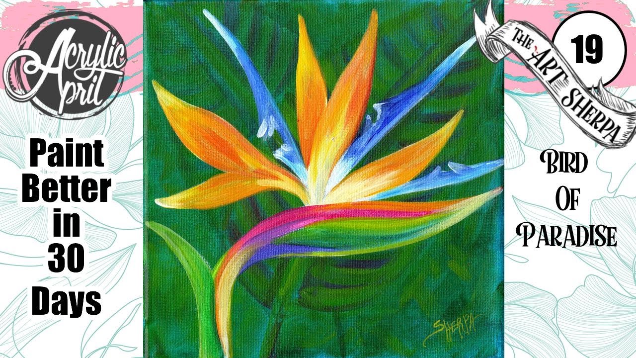 How To Paint A Bird Of Paradise Flower Easy Acrylic Step By Step Day 19 Acrylicapril2022 Youtube